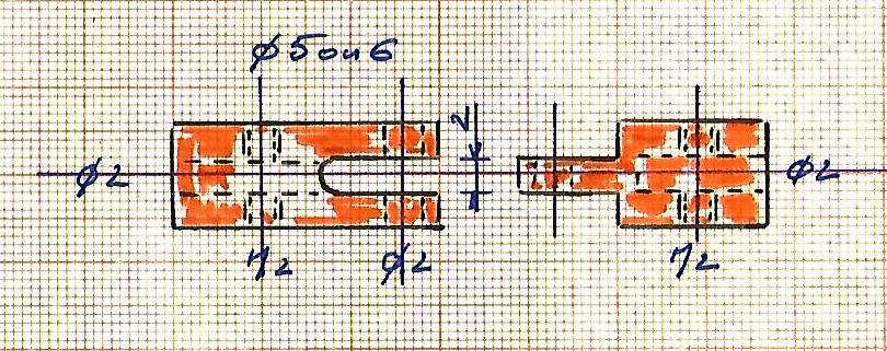 C'est assez simple si on part d'un rond que l'on commence à tronçonner sans oublier de donner pour le centrage un coup de foret à centrer de diamètre 1. Les perçages de l'axe et du trou servant à la pose d'une tige pour le blocage avant la soudure se feront sur un même axe après repérage avec le trou central : trou de 3 à 2 de ce trou, puis trou de 1.5 à 3.5 de ce trou et dans l'autre sens.