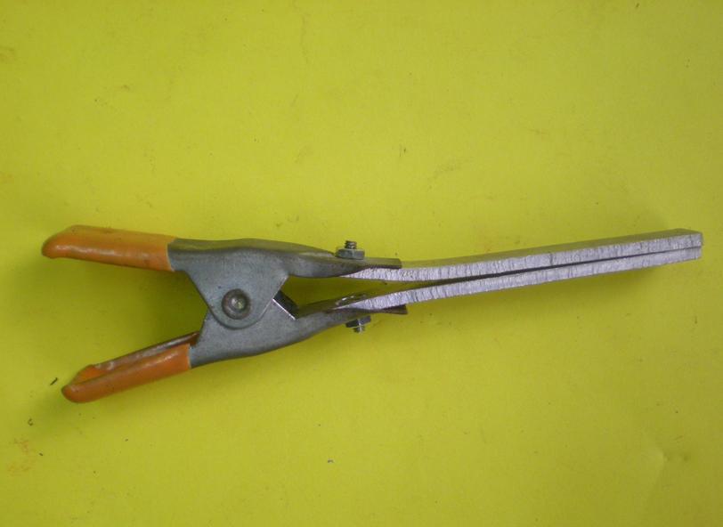 72 - des pinces pour la soudure à l'étain | Pour souder de la tôle fine d'acier avec de l'étain, on étame les pièces à unir, on les serre et on chauffe l'ensemble.