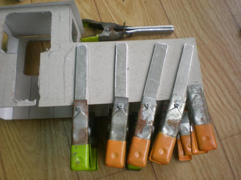 Quand les pièces sont petites, on peut utiliser des pinces du commerce mais, si l'espace est plus grand,il faut s'en fabriquer en partant des premières ... |