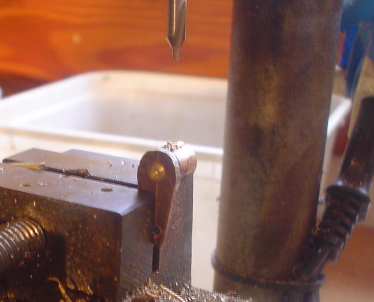 | Il ne restera plus qu'à percer puis tarauder pour la tige du piston. Petit repérage à la lime de la position de l'axe. |