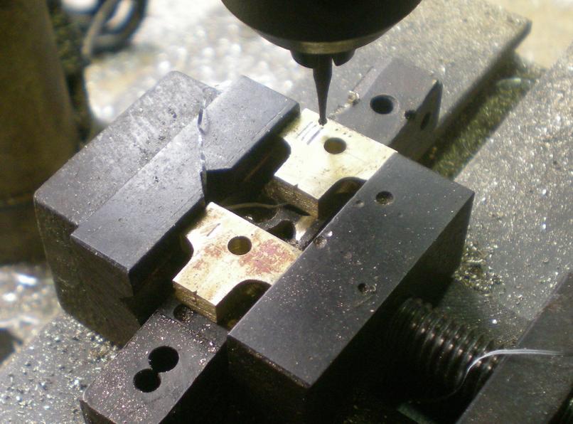 74 - fabrication d'une bielle d'excentrique | Fabriquée dans de la tôle de laiton de 1 d'épaisseur, le perçage à 10 ne restera pas centré ... or, il faut que le centre de notre trou soit exactement sur l'axe de la bielle !