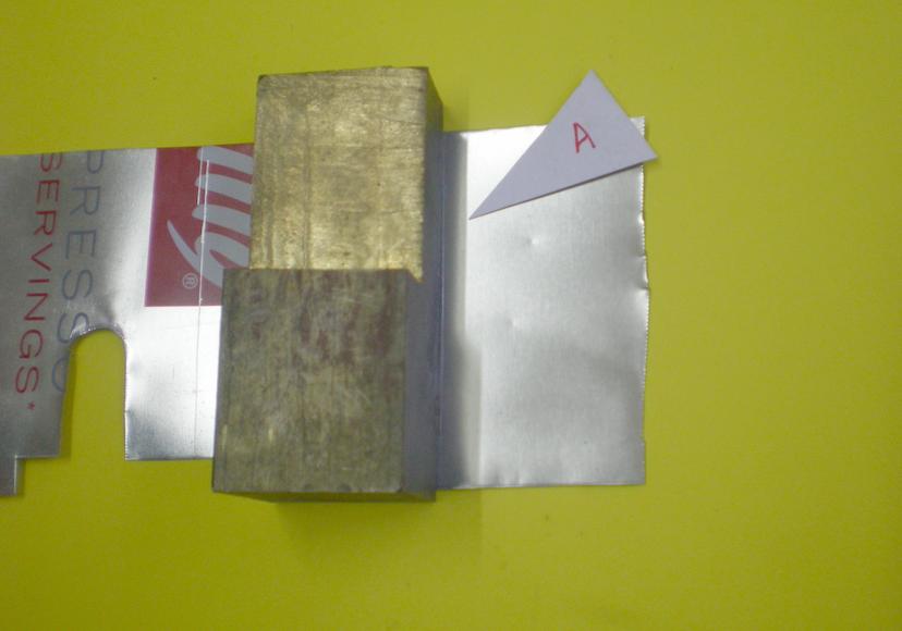 | Pliage en appuyant fortement sur la cale et le tube : on pourrait aussi prévoir un montage pour le serrage ... |