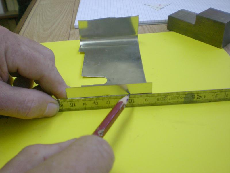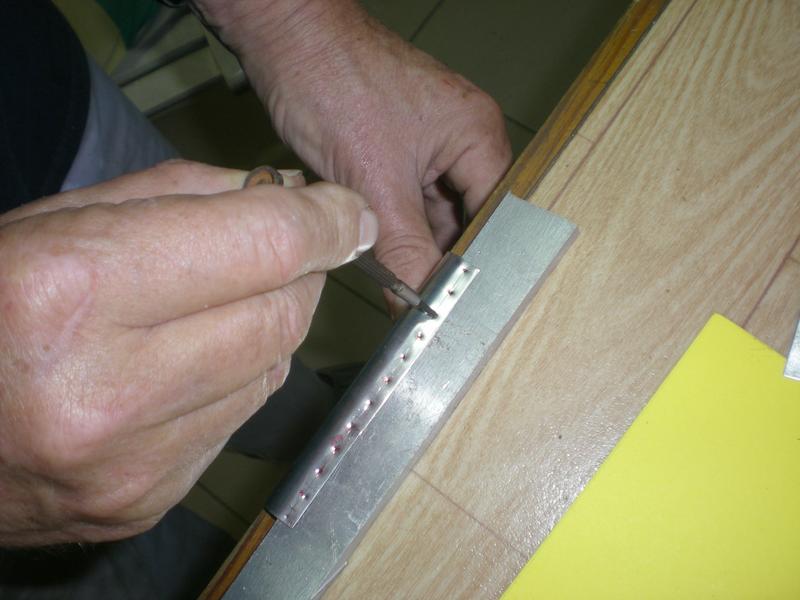 Repérage de l'emplacement du trou à percer en bout de la languette d'alu. |