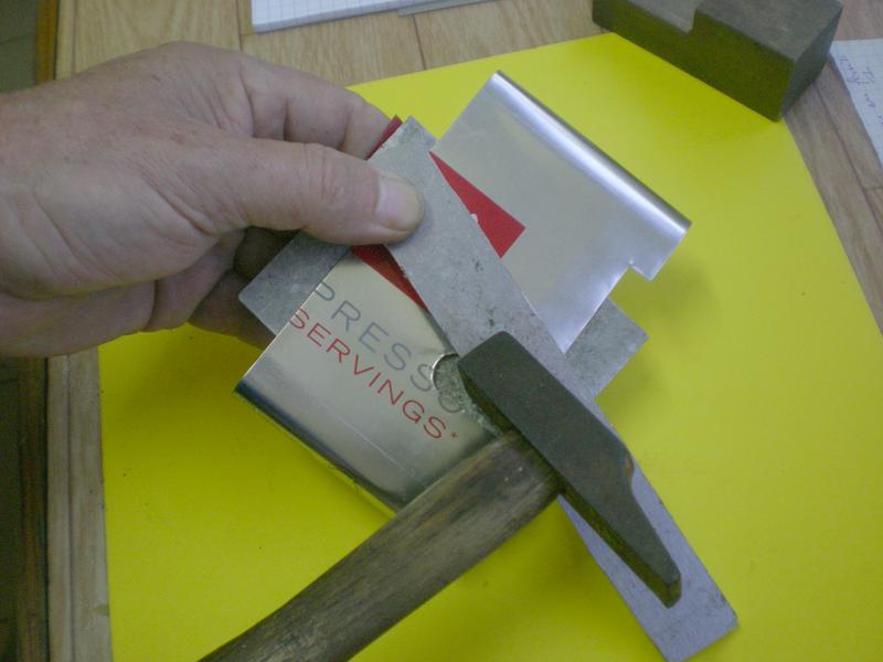 | Petit martelage entre deux plat d'alu pour aplanir notre pièce. |