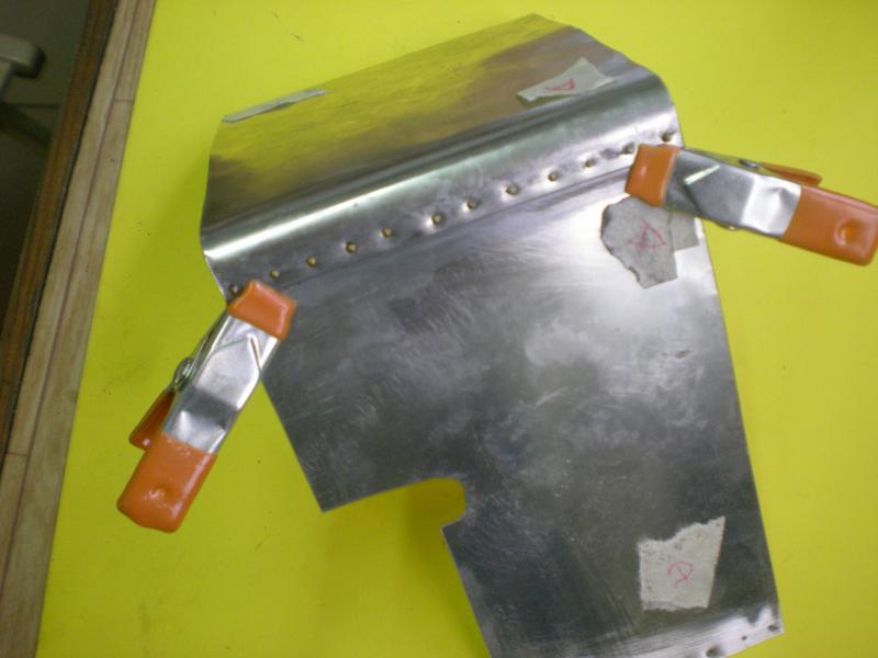 | Poncer puis nettoyer à l'acétone les endroits où les tôles seront en contact et enduire de mastic la tôle intérieure (il vaut mieux procéder à un repérage des tôles au fur et à mesure du perçage). |
