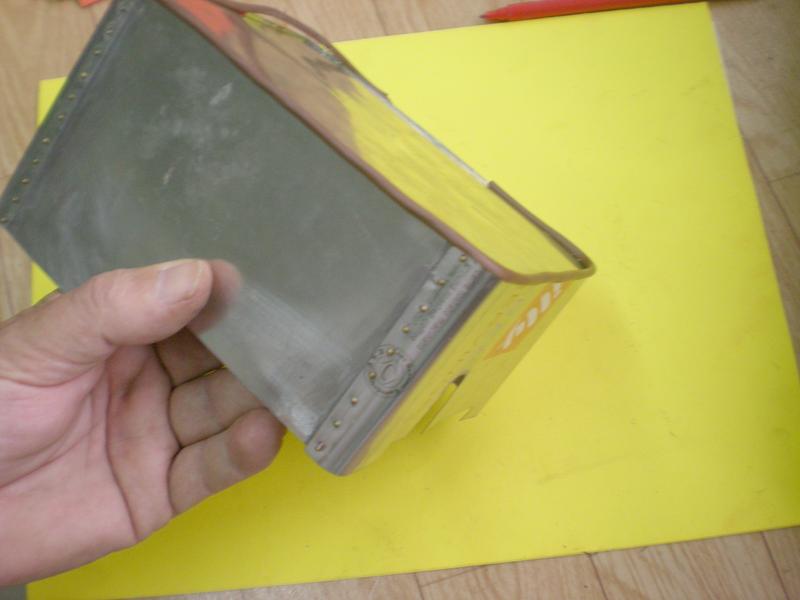 La tôle provient de boîtes de café moulu qu'on demandera au cafetier du coin ! A noter que le couvercle rectangulaire peut servir pour dissimuler une fois les réglages terminés le manomètre et le robinet de gaz. |