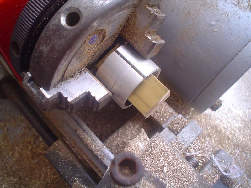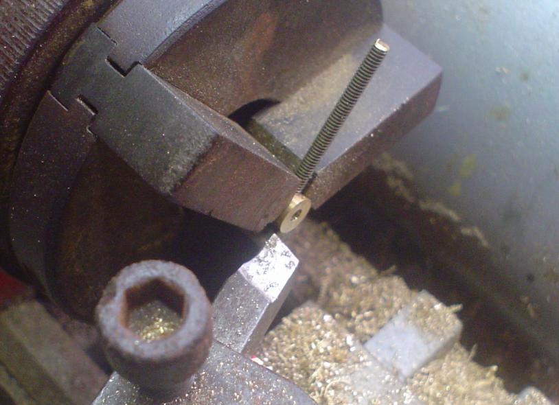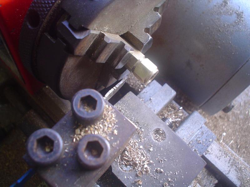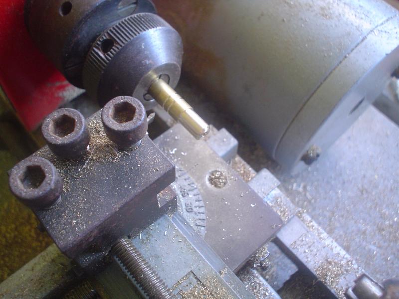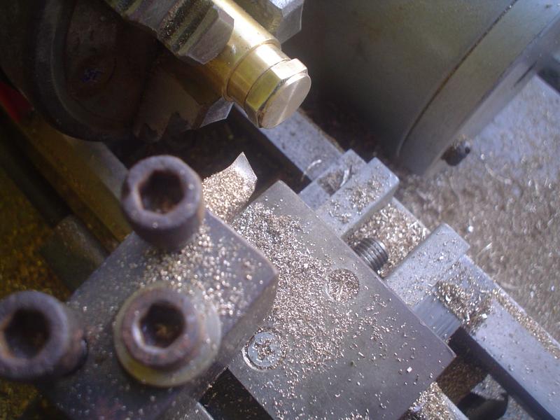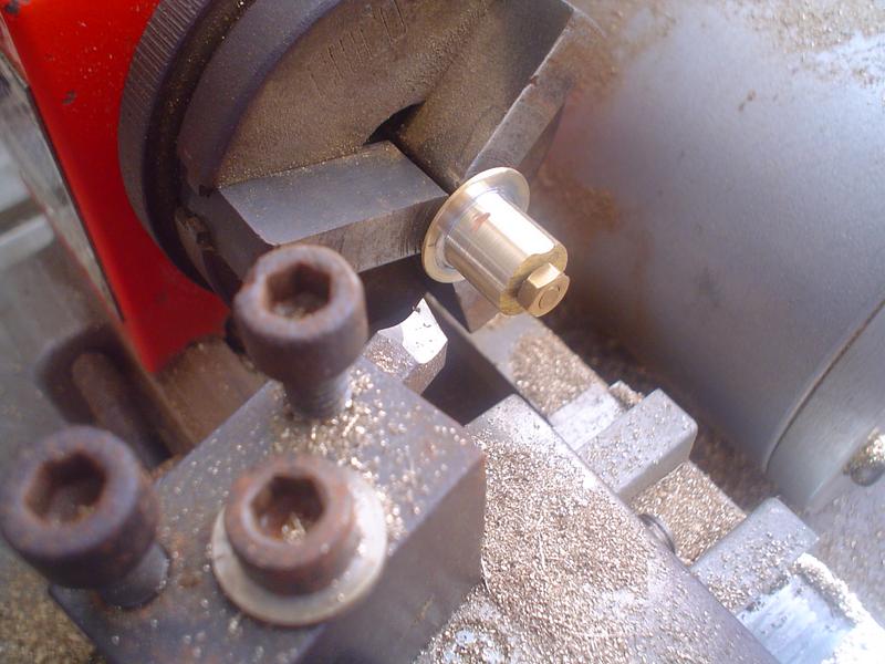 si nécessaire, on peut reprendre au tour : ici, après brasage, la tête est reprise pour obtenir une épaisseur de 2