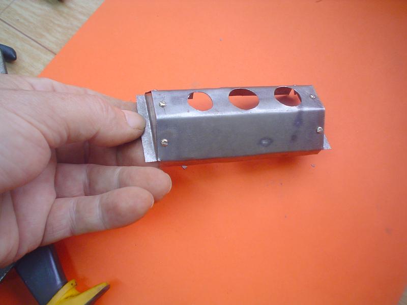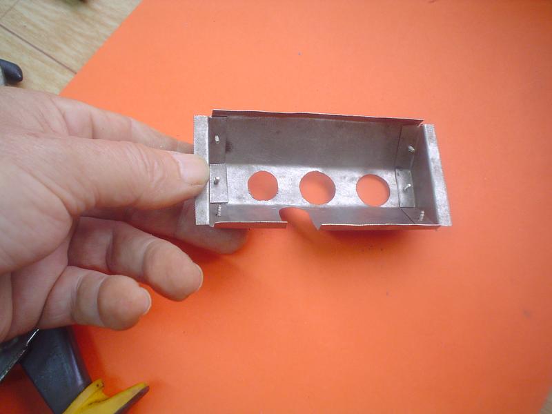 cette fois pour la mini-chaudière qu devrait équiper le triporteur. Les performances sont améliorées grâce à un capot. Les fixations des tôles se font avec des vis à métaux en acier de diamètre 1.9 et de longueur 4.5.