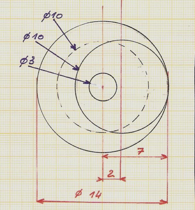 | percer en s'aidant de ce repère les trous pour le filetage sur le rond non excentré (1.6 pour M2) |