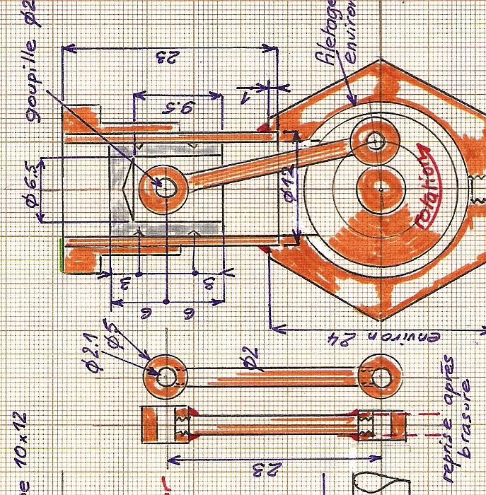 44 - tête de bielle | | Pour l'articulation du précédent piston, il faut une tête de bielle : beaucoup de simplifications pour en obtenir deux différentes ... au choix ! |