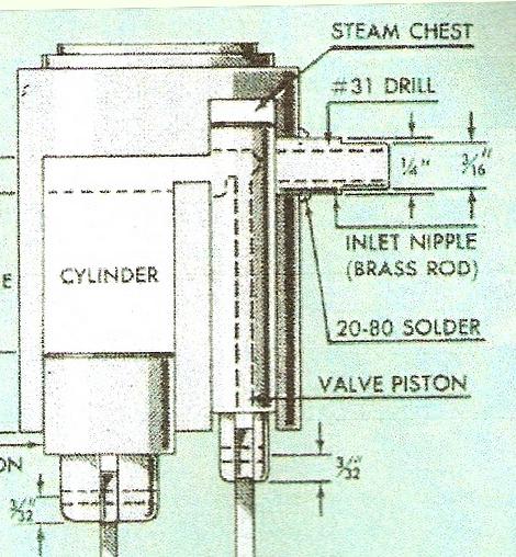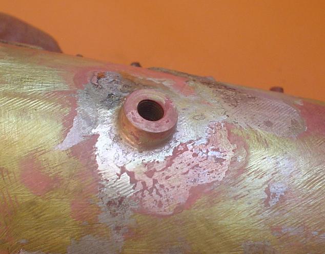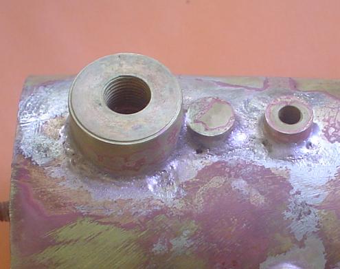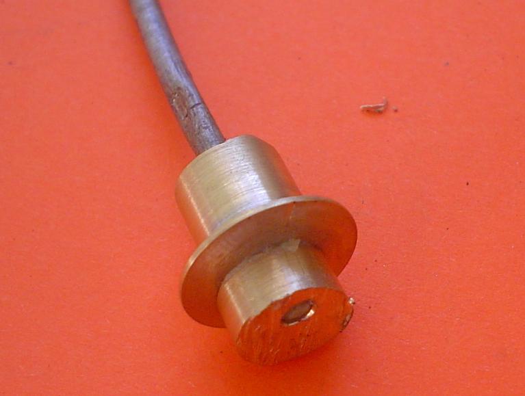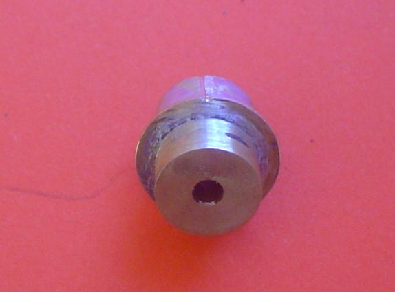 Un rond de 16 ou plus est travaillé en bout pour s'adapter au diamètre du cylindre choisi pour la chaudière. On le sciera à la bonne hauteur, le percera et le taraudera. |