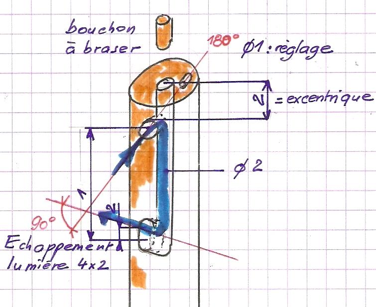 | Perçage de l'échappement : deux trous de 2 Revenir en arrière à la position de 90° ou continuer jusqu'à 270° : tout dépend de la position de l'échappement |