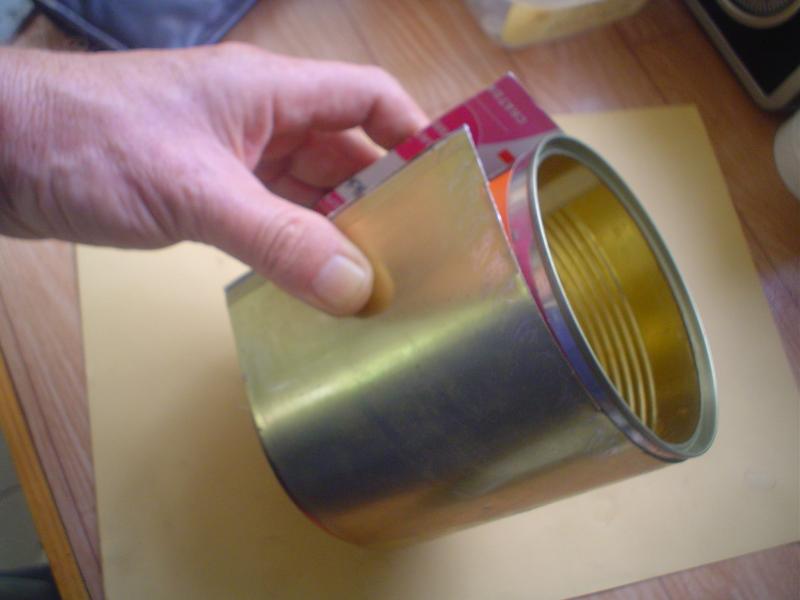 On commence par enlever les fonds avec l'ouvre-boîte, puis on coupe à la cisaille à la ligne de soudure puis on enlève toujours à la cisaille, les bords. La tôle garde sa forme : ne pas la chauffer sinon on la déformera. Il suffit de l'enrouler à l'envers sur une autre boîte pour ... |