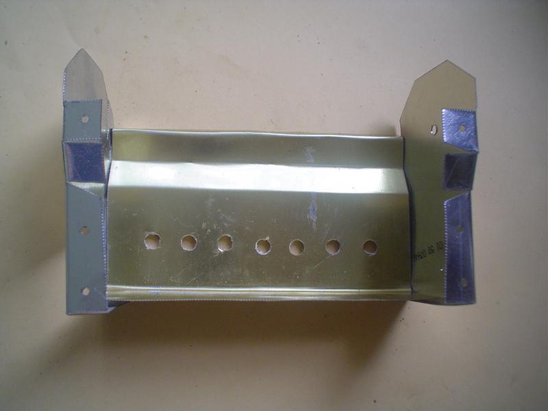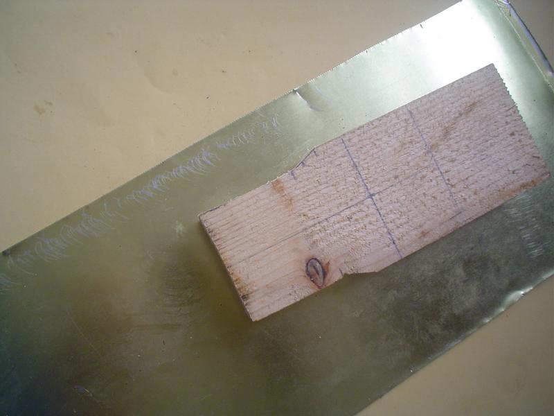 Traçage des côtés, perçage des trous d'arrivée d'air avec une cale en bois au-dessous. Attention au maintien car la tôle ... ça coupe !!! |
