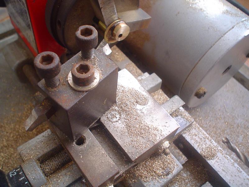 Il est même possible de reprendre les côtés à condition de ne pas oublier de bien écarter l'outil de coupe de son axe, sinon la vis de fixation va provoquer un magnifique pliage ... On approche l'outil, et on descend : petites passes. Essai réalisé et réussi avec de la tôle d'alu de 1.5 d'épaisseur.