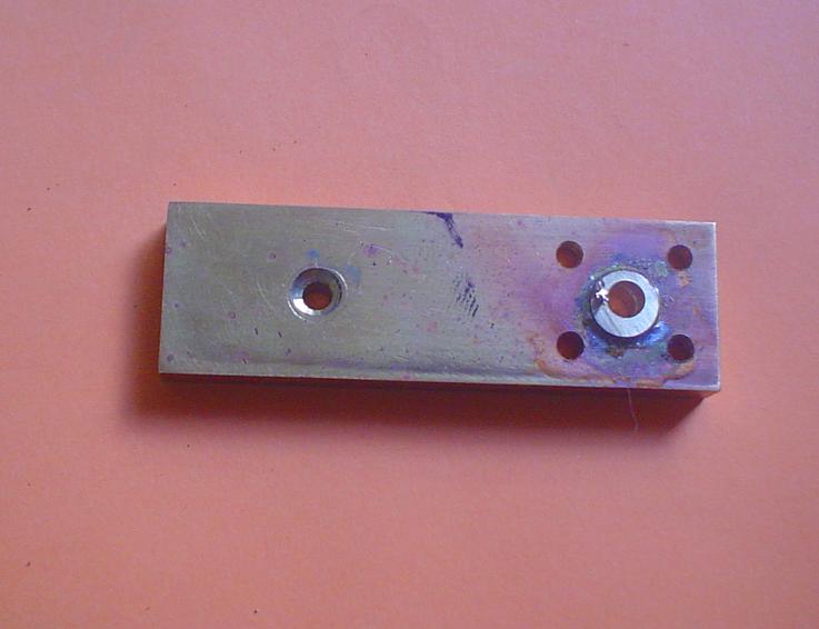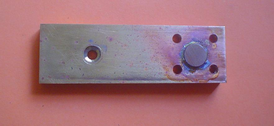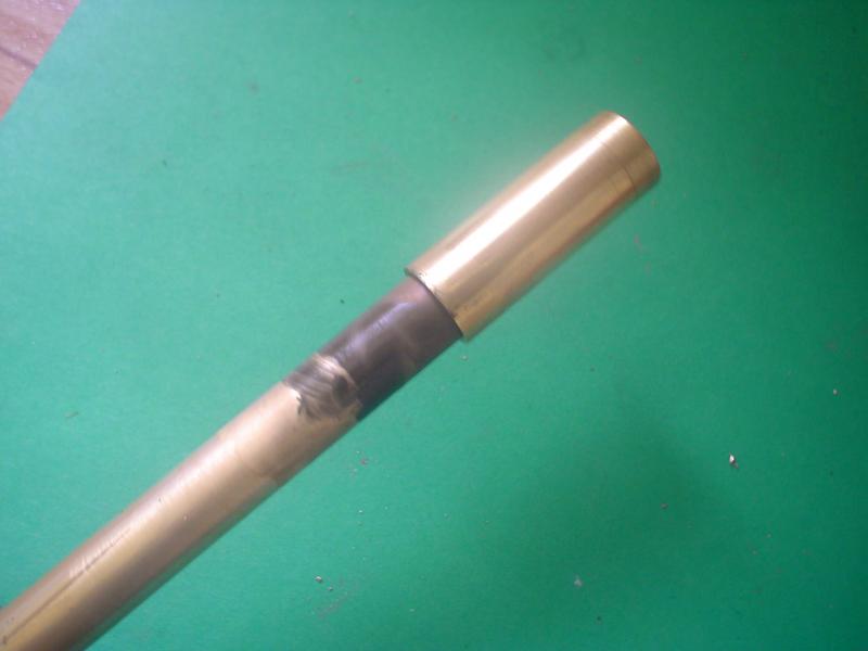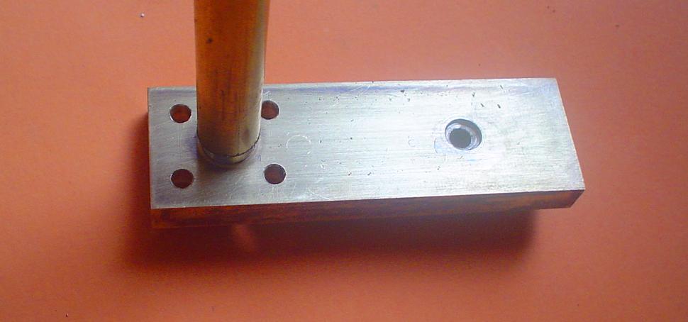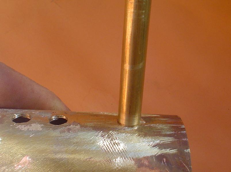 | Braser en bout un rond en laiton de 2 à ras du trou de 2. Bien chauffer pour que la brasure pénètre profondément. |
