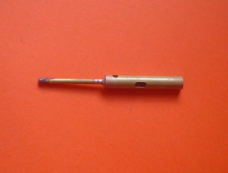 Pour la réalisation, du rond de laiton de diamètre 5. Le cylindre, percé à 4.9, sera ensuite alésé à 5 avec un alésoir à main. |