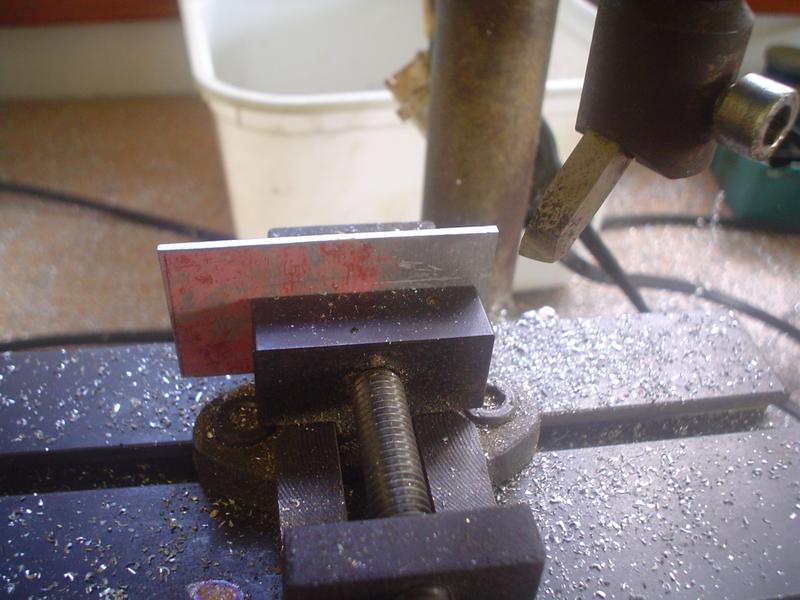 59 - usinage d'une cornière | La cornière n'est pas facile à placer dans un étau et utiliser un carré en alu ou en laiton permet d'assurer le serrage dans de bonnes conditions.