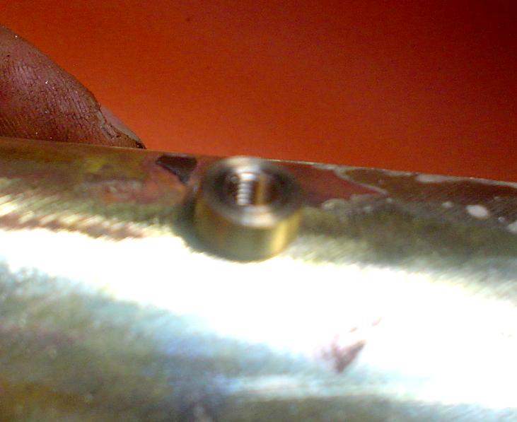 | Perçage puis taraudage du rond que l'on sciera ensuite à la bonne hauteur. |
