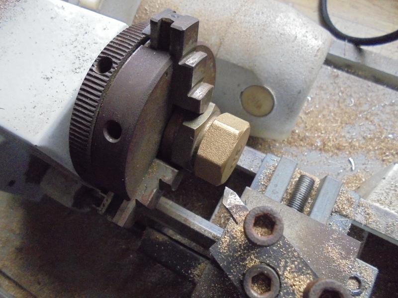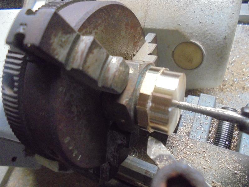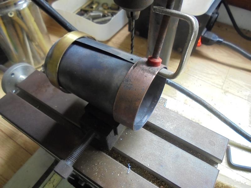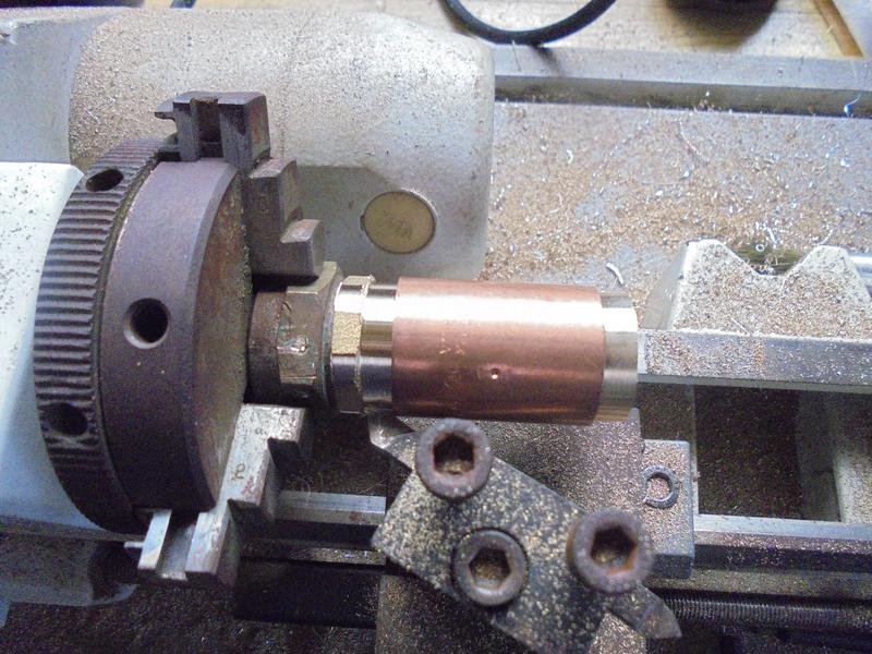 préparation de la valve de voiture: la bague qui va servir à la fixation sur le réservoir fait environ 7 de diamètre. On va braser cette bague puis percer pour installer la tubulure. Là aussi un montage serré est appréciable pour le maintien de ce tube de 2 x 3.. |