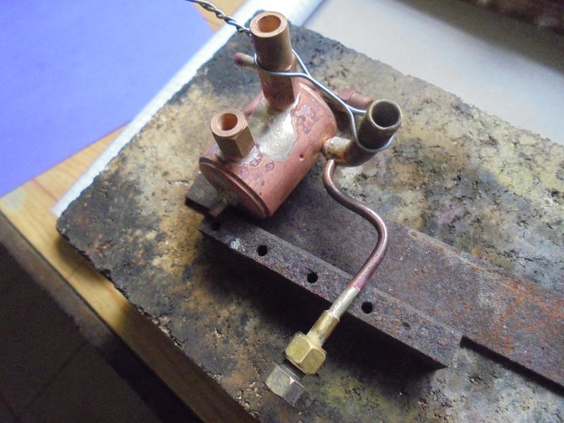 | Montage prévu pour la brasure de la valve et de sa tubulure. On brase d'abord la valve. Et ensuite ... |