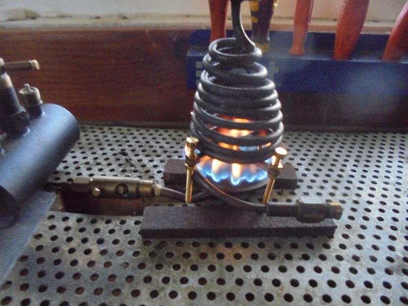 Il y a plusieurs problèmes à résoudre : . le serpentin a tendance à se tasser et le système prévu pour le maintien des spires ne peut pas être utilisé . il va falloir le maintenir en hauteur au dessus du brûleur . l'enveloppe prévue ne permet pas au brûleur de s'exprimer totalement et la chaleur nécessaire n'est pas atteint, il en faut une autre ...