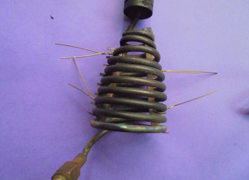. pour le maintien des spires on utilise es "échelles" existantes mais on supprime la partie centrale qui les raccordait. On ligature ensuite avec du fil de laiton, surplus à couper. |