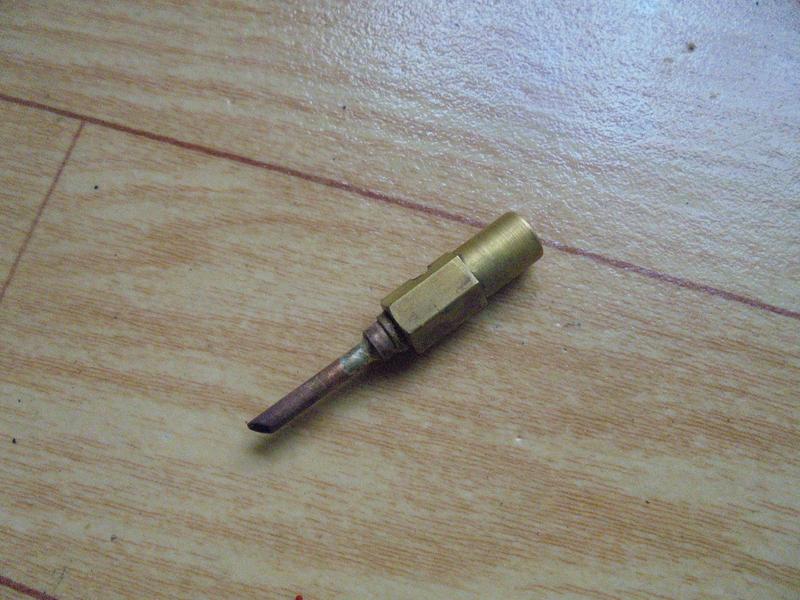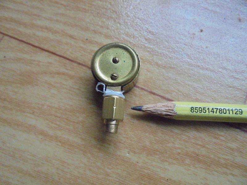 | Compléter le corps de la vanne fine par le tube de prise d'eau. Personnellement j'ai encore recuit ce tube avant la brasure et il n'y a aucun problème pour obtenir une étanchéité parfaite quand on serre le pointeau de la vanne. |