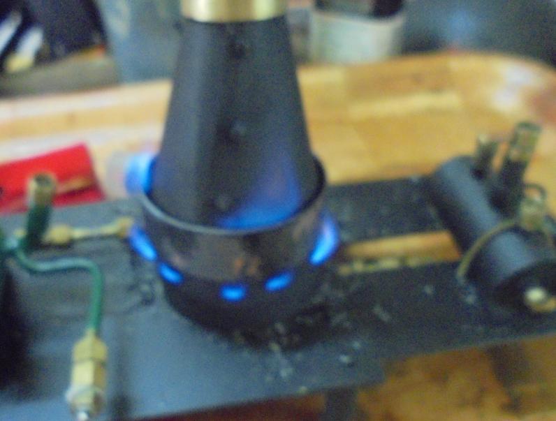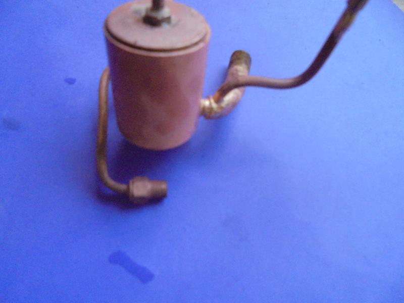 Le brûleur est un mini-champignon qui était alimenté par un gicleur de 0.2. Mais c'est insuffisant et on obtient la puissance nécessaire en en mettant un de 0.3. Pour la construction de ce brûleur (d'autres modèles peuvent aussi convenir), il faut se rendre dans cet | | album |