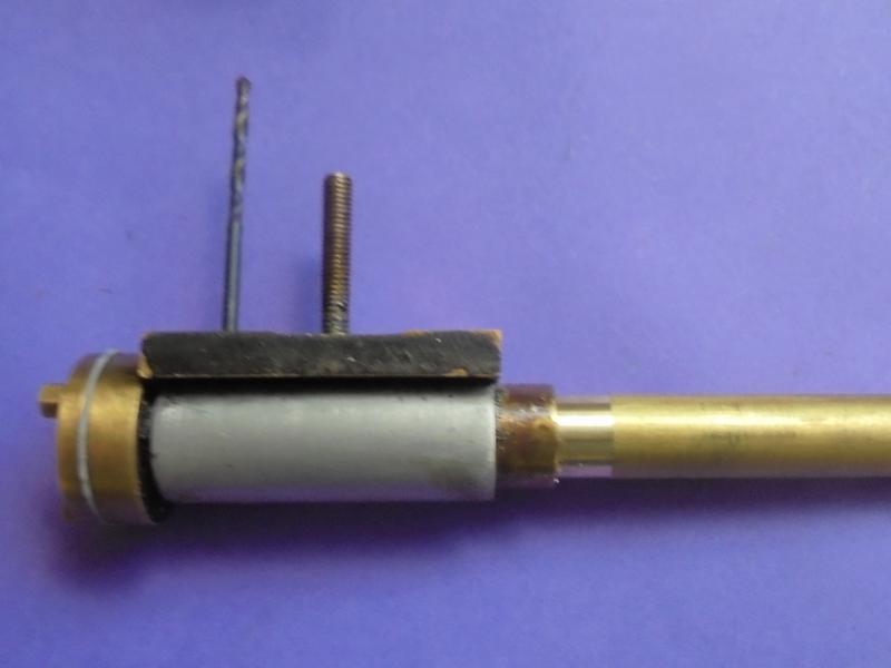| Ajuster (papier de verre très fin) un tube de 6 x 8, repérer sa longueur en plaçant un foret de 1.5 dans le trou menant au sabot.** |