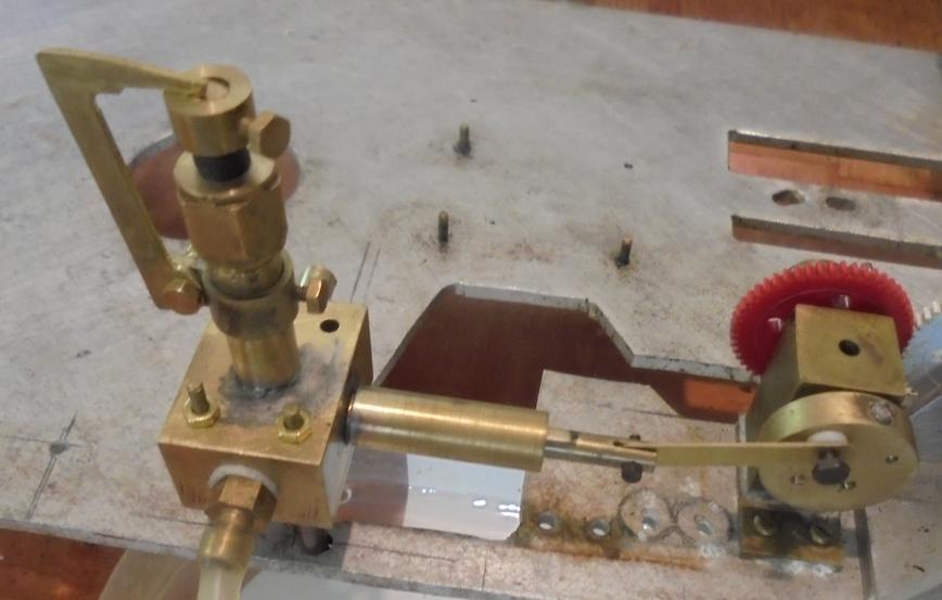 | On va la modifier un peu en empruntant la commande par excentrique d'une autre pompe et la course ne sera plus que de 4 mm. album 8 ème pompe |